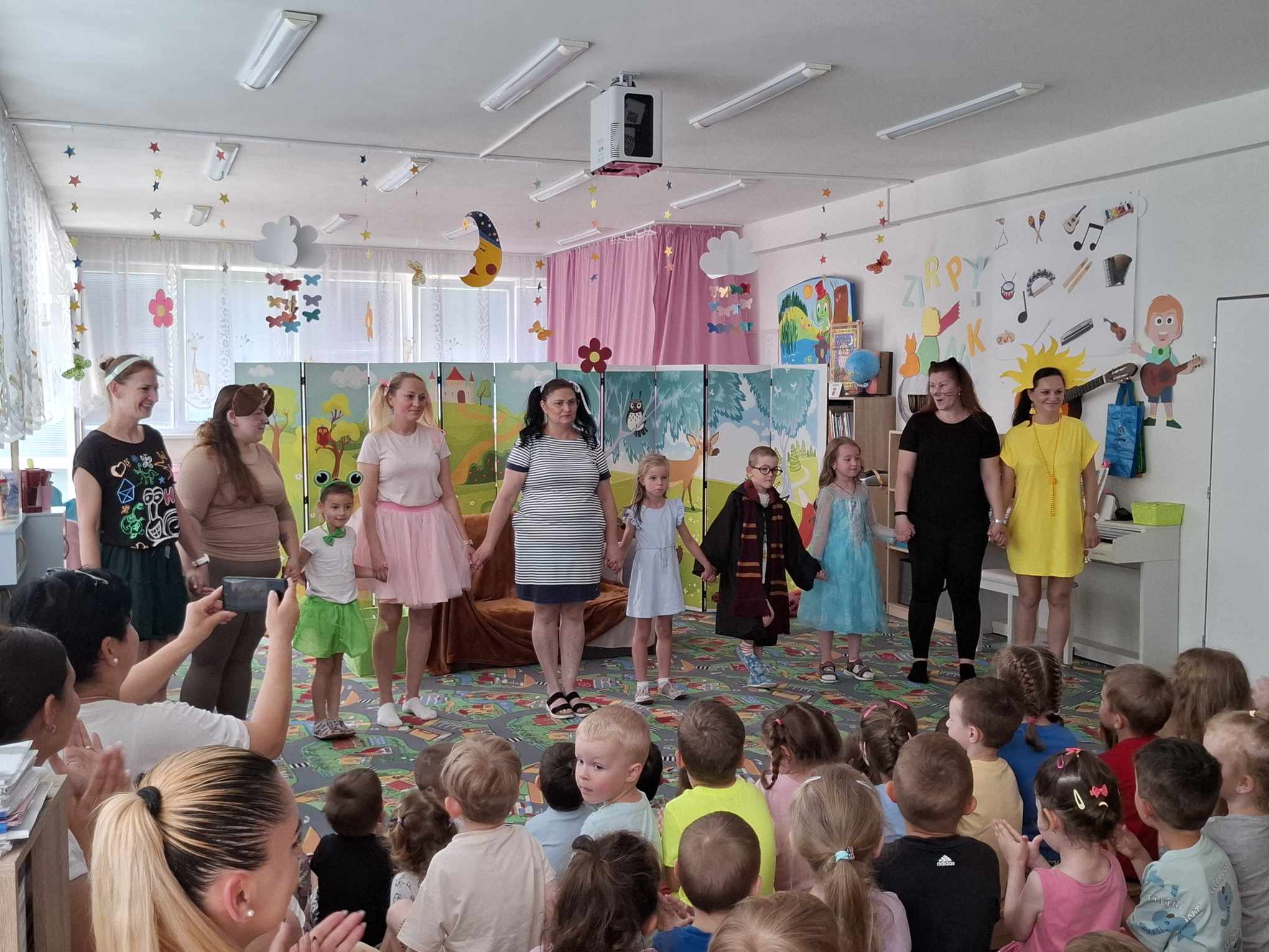 Dňa 11.06. sa naši predškoláci lúčili so škôlkou. Ešte nedávno im slzičky osúšali p. učiteľky a teraz si slzičky utierali rodičia pri vystúpení svojich detičiek. Rodičia s dojatím sledovali program, ktorí si deti nacvičili. Nechýbali piesne s doprovodom klavíra, prednášali básne o rozlúčke so škôlkou, o kamarátoch o škole. Zatancovali rodičom pekné tancčeky na ľudovú nôtu. Vystúpenie sa rodičom veľmi páčilo, čo ocenili a odmenili deti veľkým potleskom.
