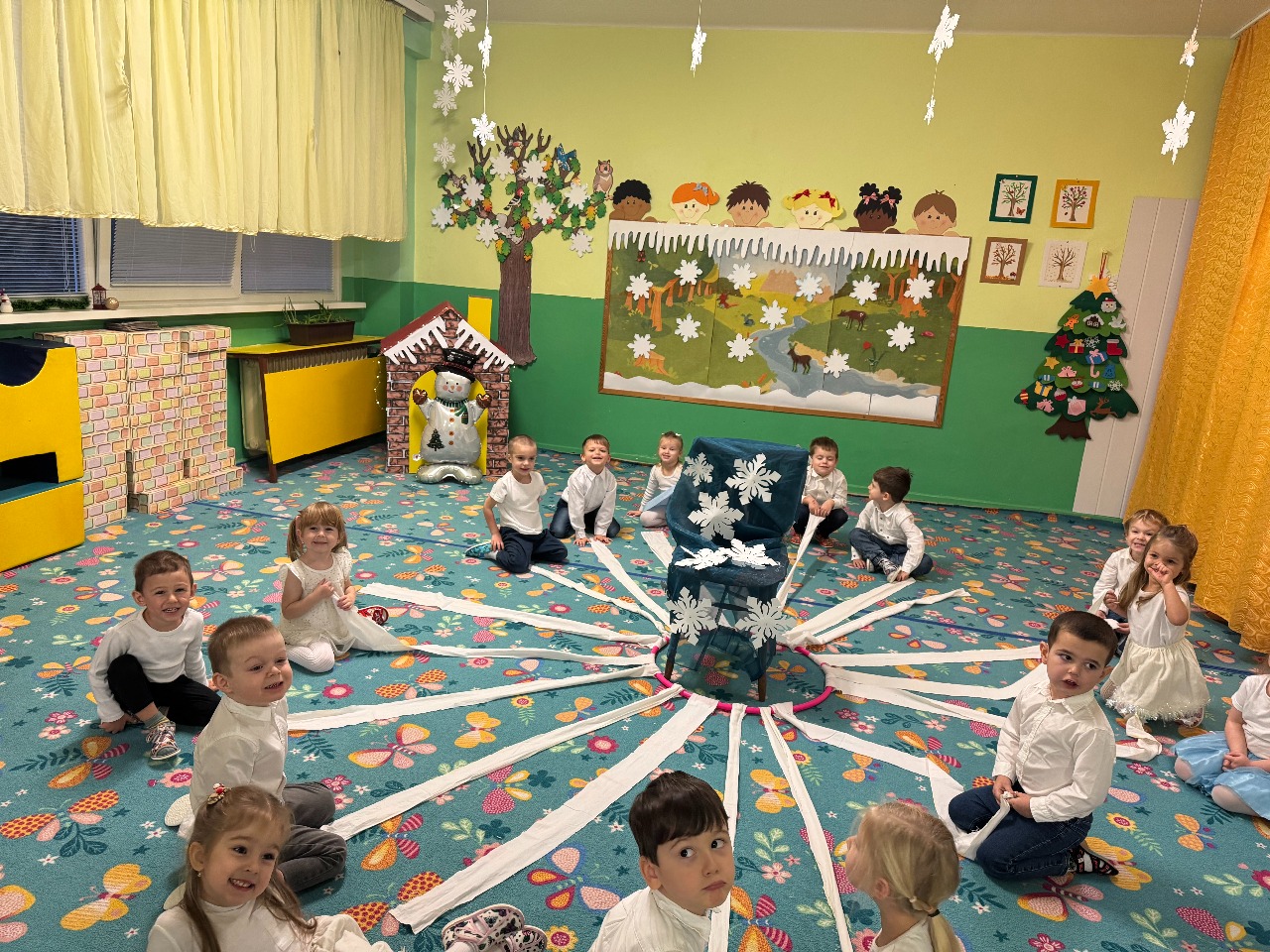 Naša škôlka sa zmenila na zázračnú krajinu. Vo vestibule nás vítajú snehuliaci a Mikuláš, chodby zdobia vianočné čečiny ozdobené vianočnými ozdobami. A v tom slávnostnom šate sme čakali na nášho Mikuláša. Deťom najskôr zahrali p. učiteľky divadielko O Barborke, ktorá hľadala biely sen. Rozprávka skončila šťastne a nakoniec prišiel dlho očakávaný ujo Mikuláš. Deti si odniesli domov krásnu spoločenskú hru aj sladkosti.