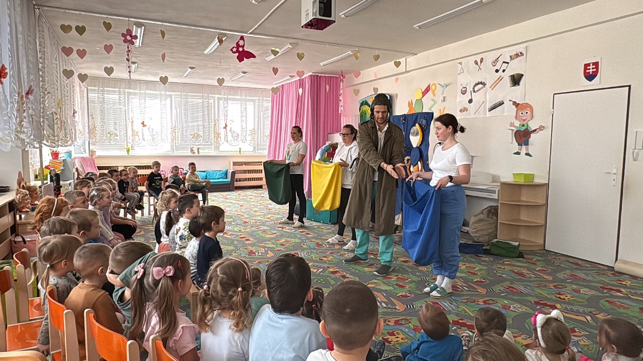 Dňa 10.04. 2025naši predškoláci išli pešo na divadielko Brokolička, ktoré sa konalo vo výmenníku na Brigádnickej 2.